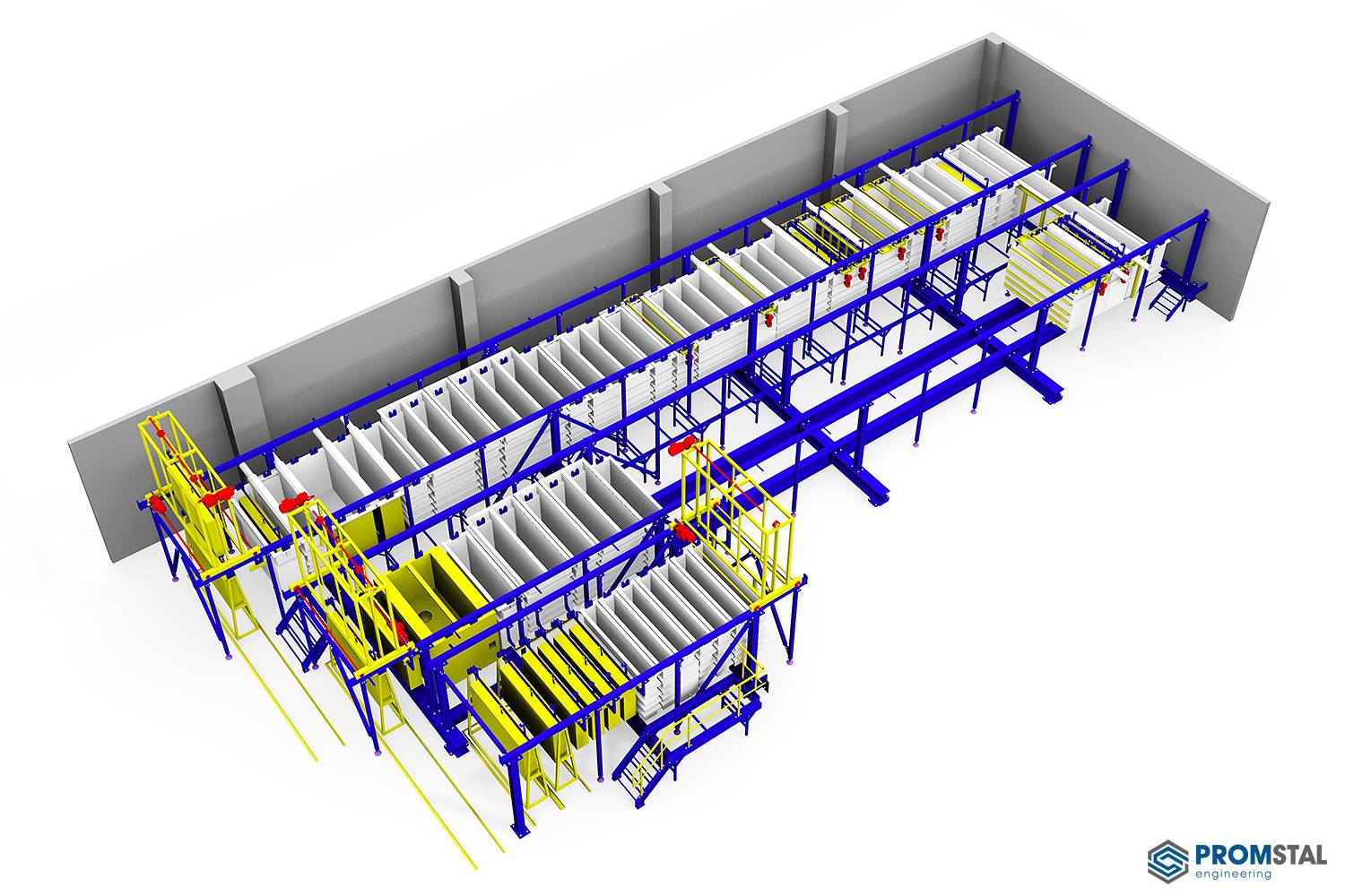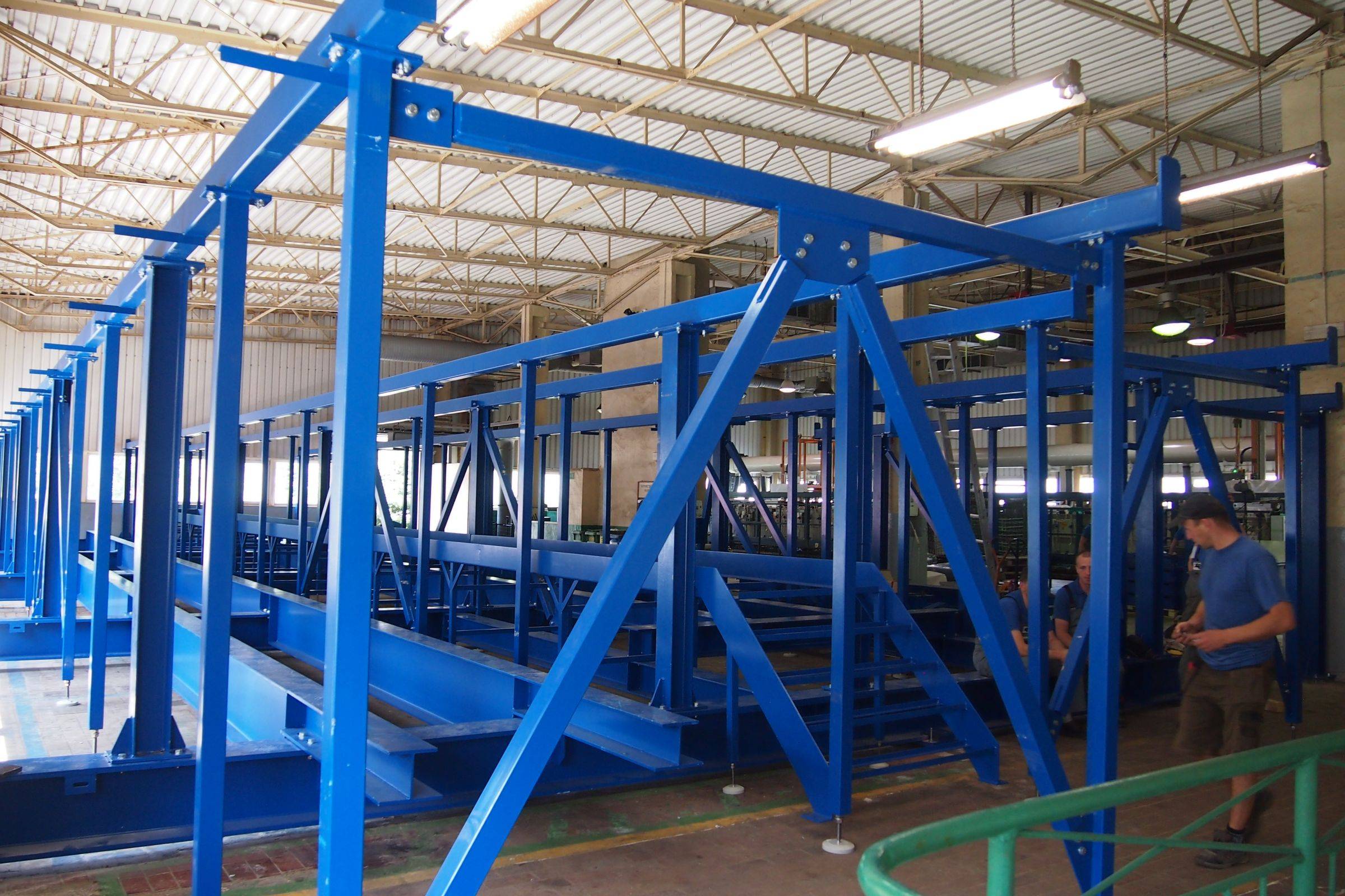 Rynek 17, 57-340 Łężyce, Okres Kladsko, Dolnoslezské, Polsko | Technologická konstrukce linky pro galvanické pokovováníInvestor: Z.E.M., Sp. Z o.o. Místo stavby: Łężyce Dodatečná montáž technologické nosné konstrukce linky pro galvanické pokovování do stávajícího železobetonového objektu. Kotvením konstrukce chemickými kotvami do železobetonových sloupů a nosných zdí sklepního podlaží byla vyřešena nedostatečná nosnost podlahy. Součástí dodávky pochozí servisní lávky včetně nosných PVC roštů. |