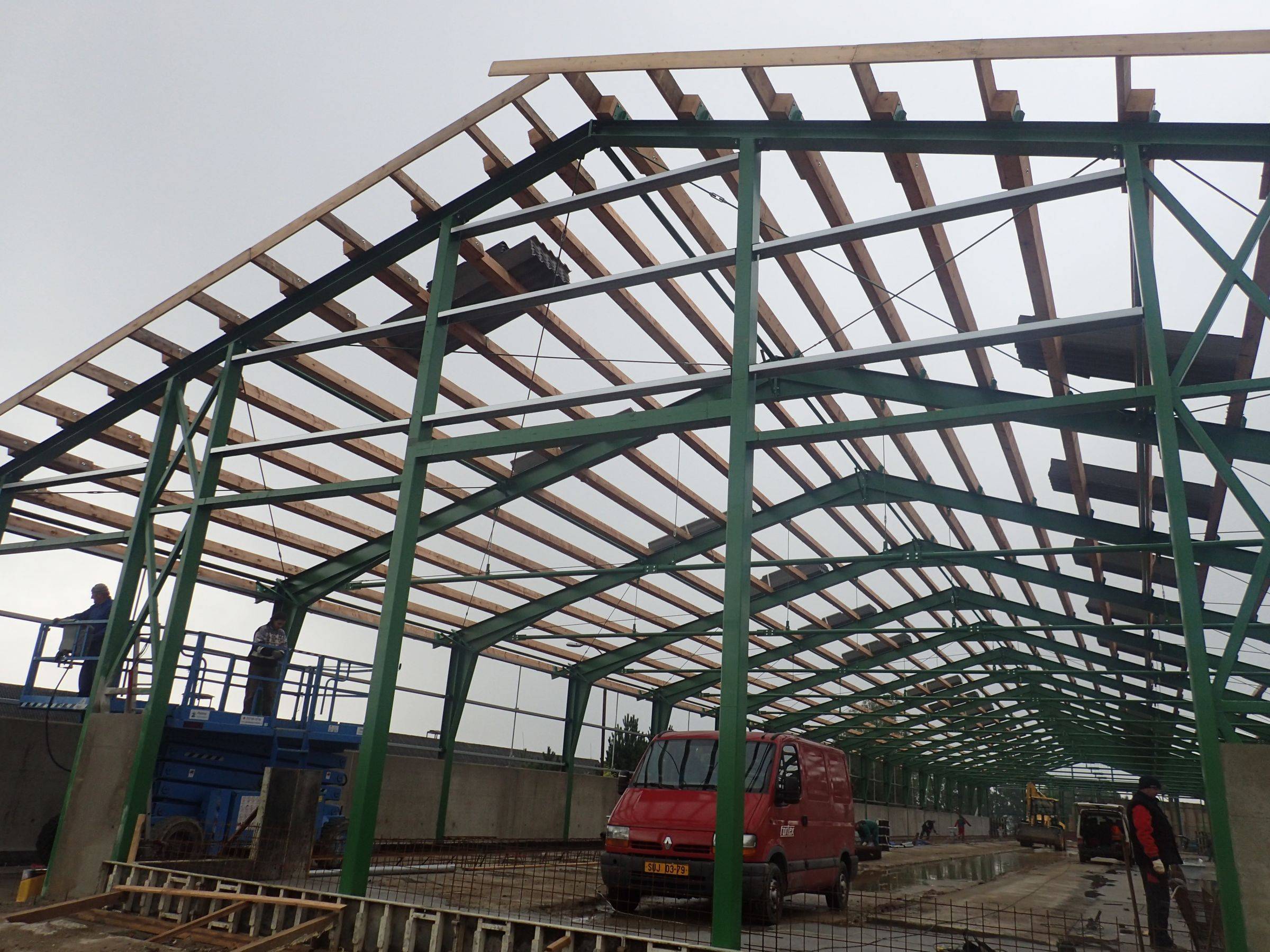 445 131, 79351 Huzová, Olomouc, Olomoucký kraj, Česko StájInvestor: FORTEX - AGS a.s.Místo stavby: HuzováDodávka a montáž ocelové konstrukce. Další fotografie